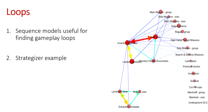As an example, the Strategizer cluster tend to follow the loop “safe area – inventory operation – loadout operation”, with the ladder having high target value missions, which are difficult and shows a high degree of intentionality – the Strategizers are carefully selecting these missions for their potential payout.