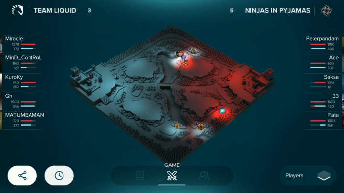 The app is show of the style and approach Weavr is taking towards telling stories with data. Weavr Companion is an audience companion application, designed as a 2nd screen tool for Dota 2 audiences. The application provides real-time visualisations of the in-game action of the tournament, in an easily accessible and interpretable format designed for novices and veterans alike.